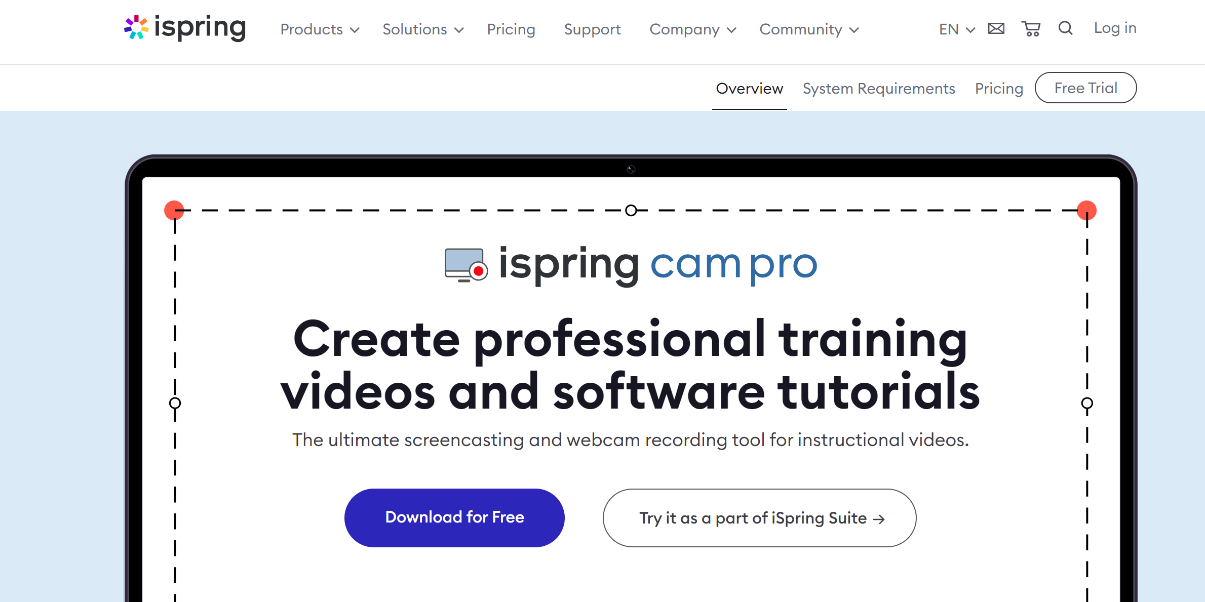 Free Cam by iSpring is an appealing screen capture and recording software option when creating webinars, presentations, or video lessons. Though there aren’t many features, Free Cam offers what is needed to make a streamlined, simple, but high-quality video recording.