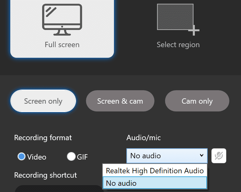 With the webcam feature, you can record webcam-only video recordings or overlay your cam over a screen recording to share information quickly and with more context and clarity. How can it not be the best free screen recorder with its wide range of options to customize your screen recordings, including the option to record your full-screen activity or only a part of your screen, with and without audio?