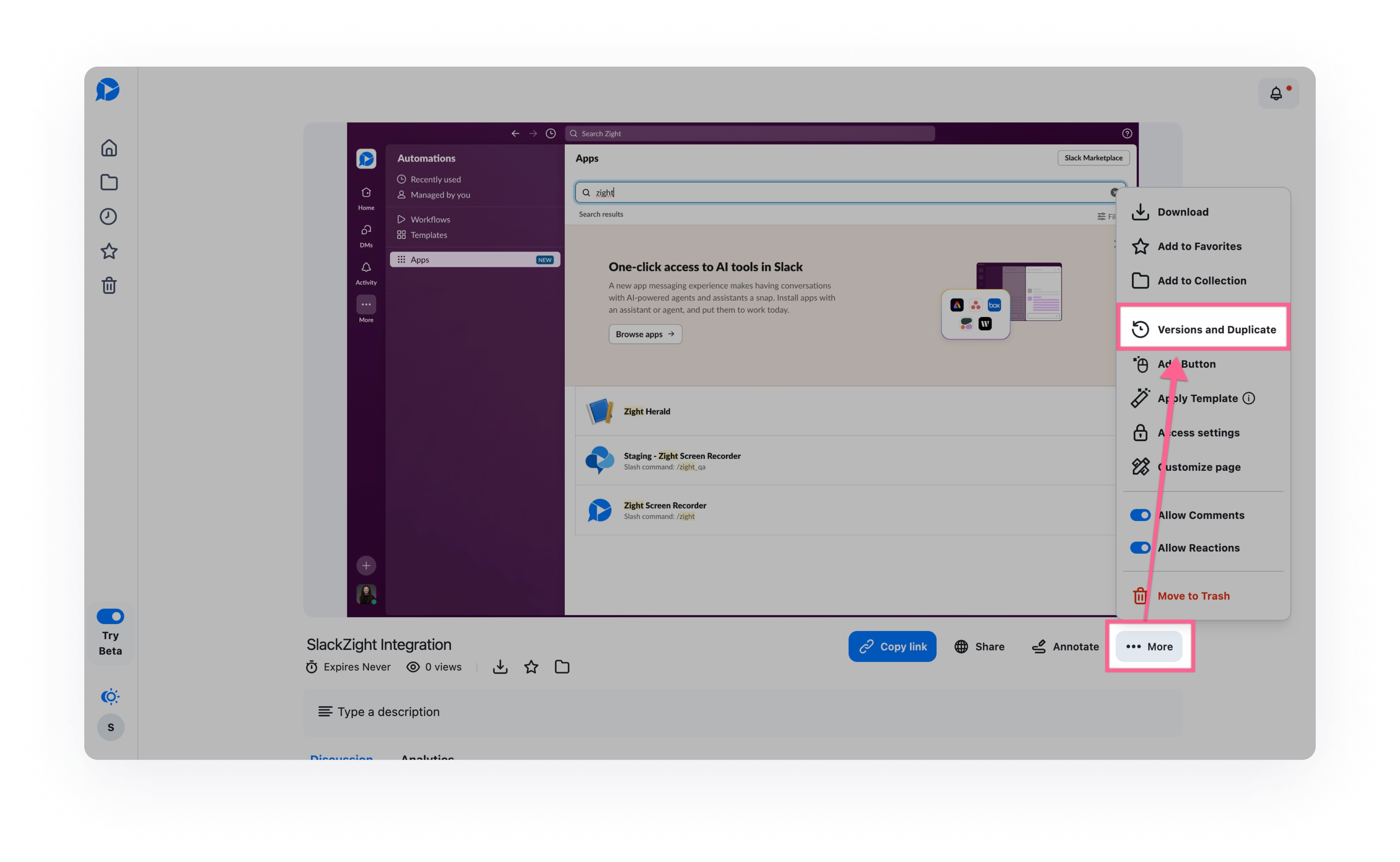 The Duplicate feature is available to all Zight users. You can access it through the Zight web dashboard, then open your content and navigate to More and then select Versions and Duplicate. You can also refer to this support article for more information.