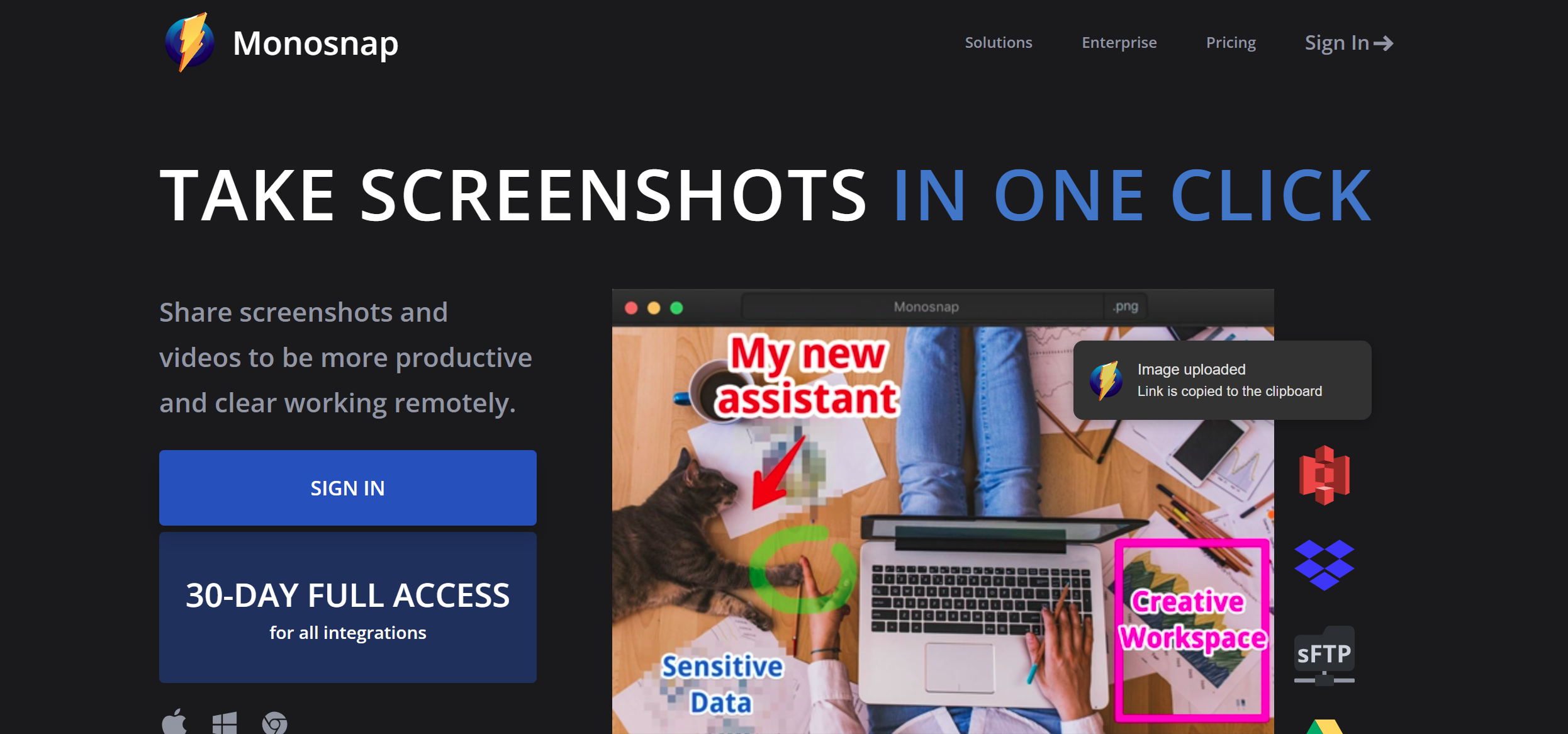 Your tool should make sharing your screenshots with others easy and fast. For example, it can automatically save screenshots to the cloud or a local folder and copy a link to your clipboard. See that it also integrates with popular apps and services you use frequently.