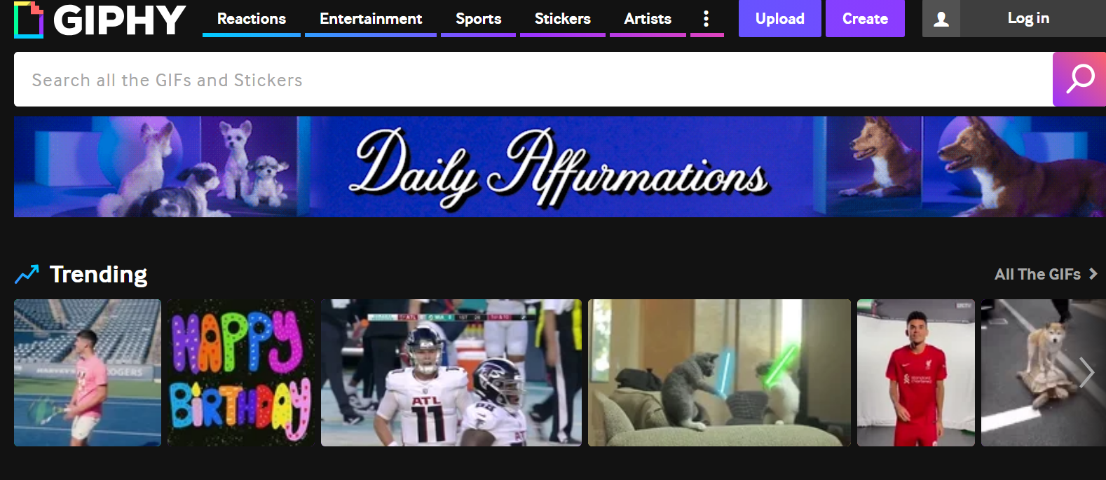 Giphy is a widely recognized GIF maker app that offers a massive library of existing GIFs. It’s one of the free apps with a user-friendly interface that lets you quickly search and find the perfect GIF for any occasion.