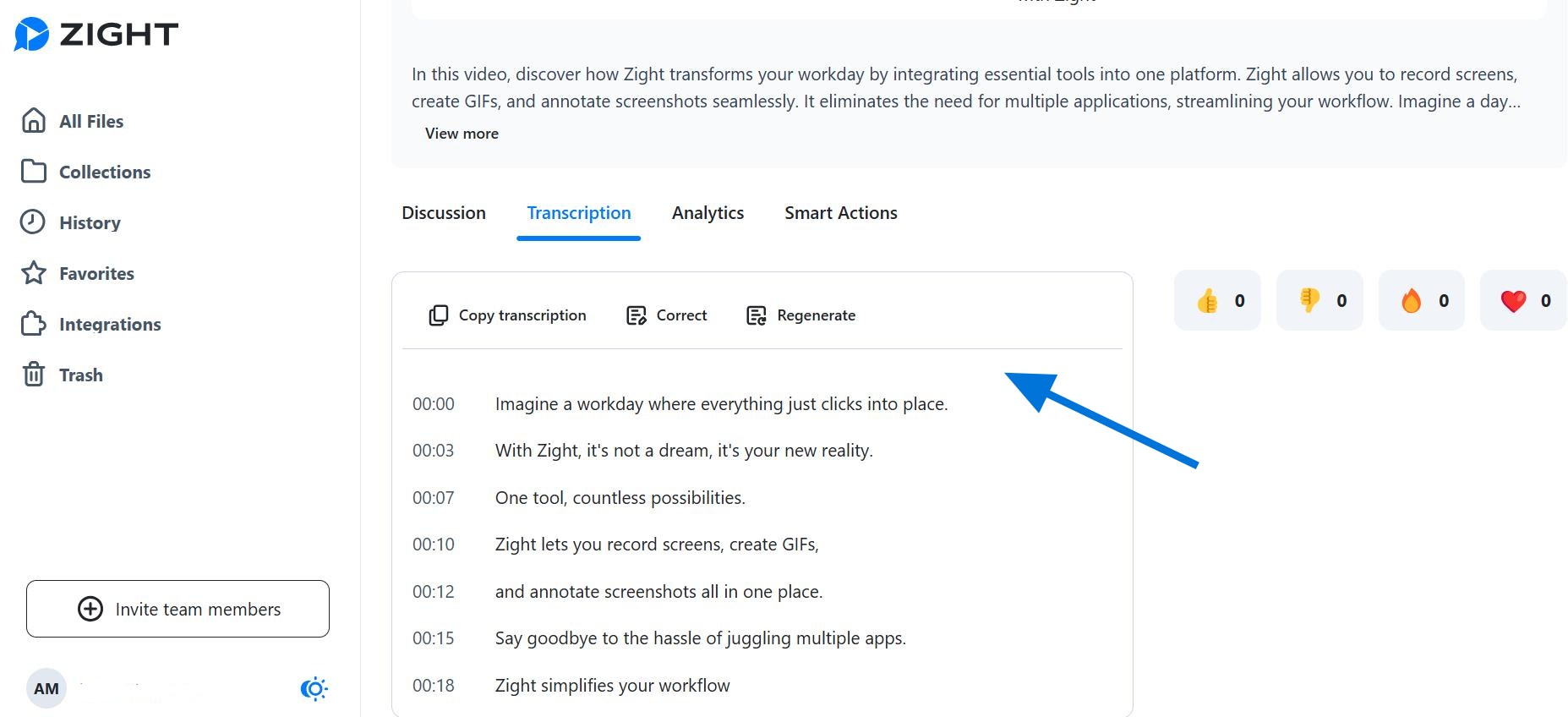 b. Generate a Transcript Using Zight AI: