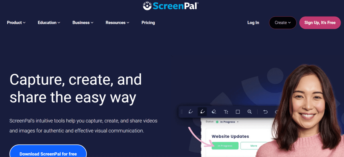 Screenpal is among the simple screen recording software in the market and it was specifically launched with the intention of easy video editing and communication. It is easy and free to use for recording needs such as trimming. However, all the features like watermark removal and annotating recordings will need a paid software upgrade.